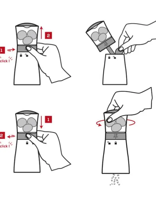 Fraîchement râpée sur un potage de légumes encore fumant dans la soupière ou au cœur de la préparation d’un soufflé salé ou sucré, la muscade a une saveur incomparable. Encore faut-il le bon instrument pour ne pas râper les doigts autant que la noix! Avec sa griffe puissante associée à un duo lame-râpe tournant simultanément, le moulin à muscade Peugeot « Goa » râpe avec efficacité les noix de muscade pour en délivrer toutes les subtilités. En un tour de main vos plats sont délicatement parfumés et vos doigts préservés! Son réservoir permet de stocker 3 noix. Transparent, vous ne serez jamais pris à dépourvu. Son design ultra-contemporain, tout en transparence se marie avec goût à tous vos accessoires dans la cuisine.